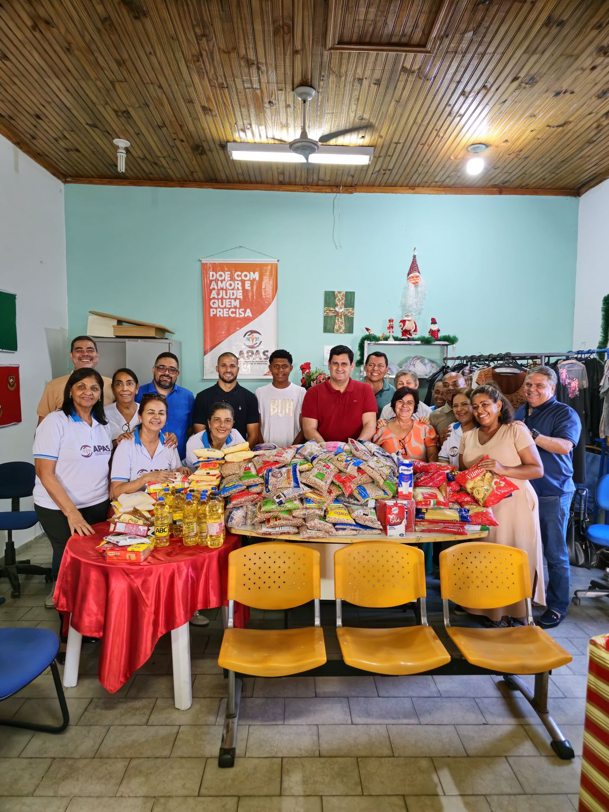 Na tarde desta segunda-feira (30/12), os donativos arrecadados foram entregues para a Associação de Promoção e Ação Social de Pirapora (APAS), a qual fará a distribuição dos alimentos para as famílias mais necessitadas da região. O prefeito Alex César acompanhou o repasse e fez os agradecimentos a todos os envolvidos.