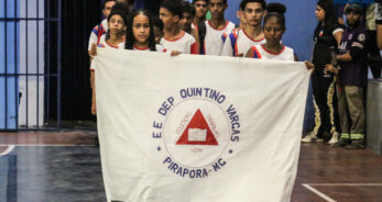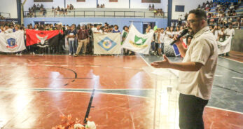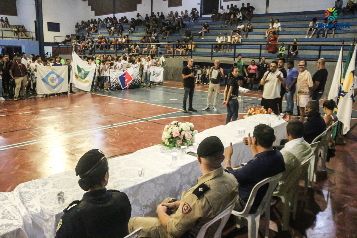 No final da tarde da última segunda-feira (17/03), a Cerimônia de Abertura preparada pela SEJUC encantou a todos por toda a estrutura disponibilizada. Prestigiada pelo vice-prefeito Maurisim (que representou o prefeito Alex César), pelo presidente da Câmara, vereador Itamar do Cordeiro e pelo Tenente Diego Carvalho (representante do 55º Batalhão da PMMG), além do secretário de Governo, Hélio Júnior, o evento oportunizou a apresentação oficial das delegações das 12 escolas participantes.