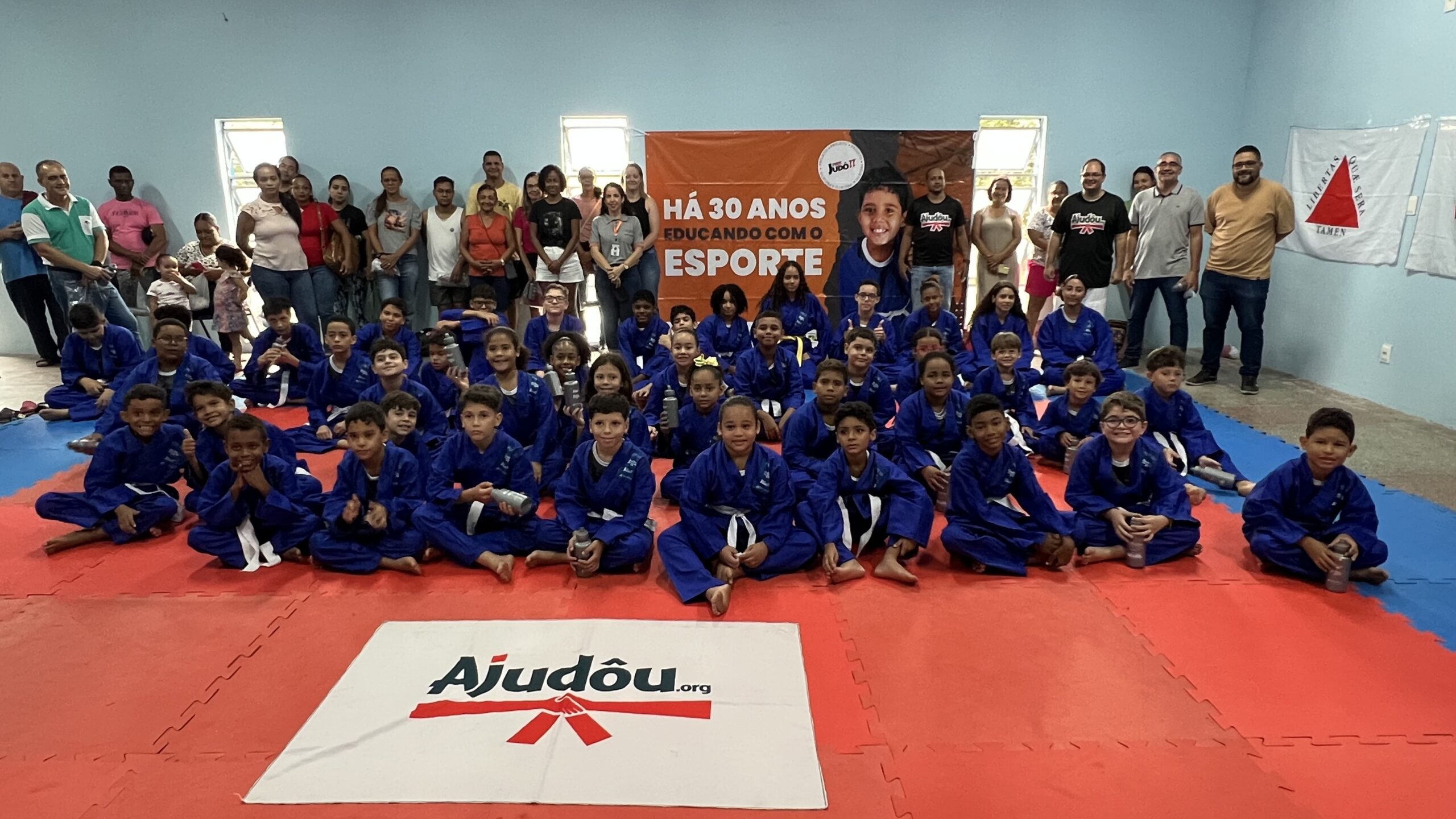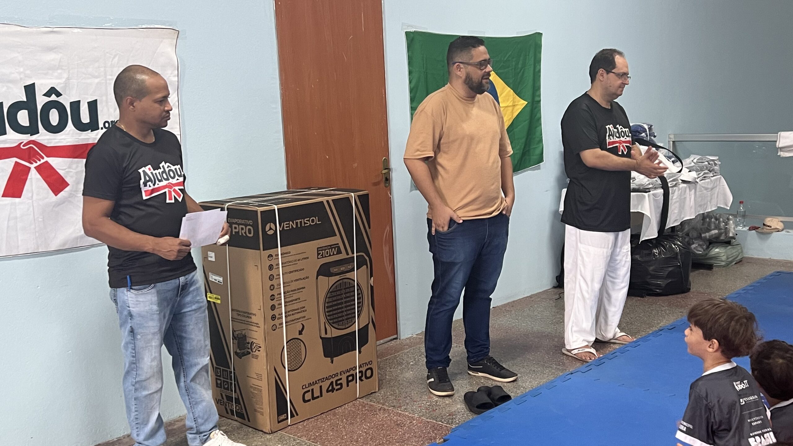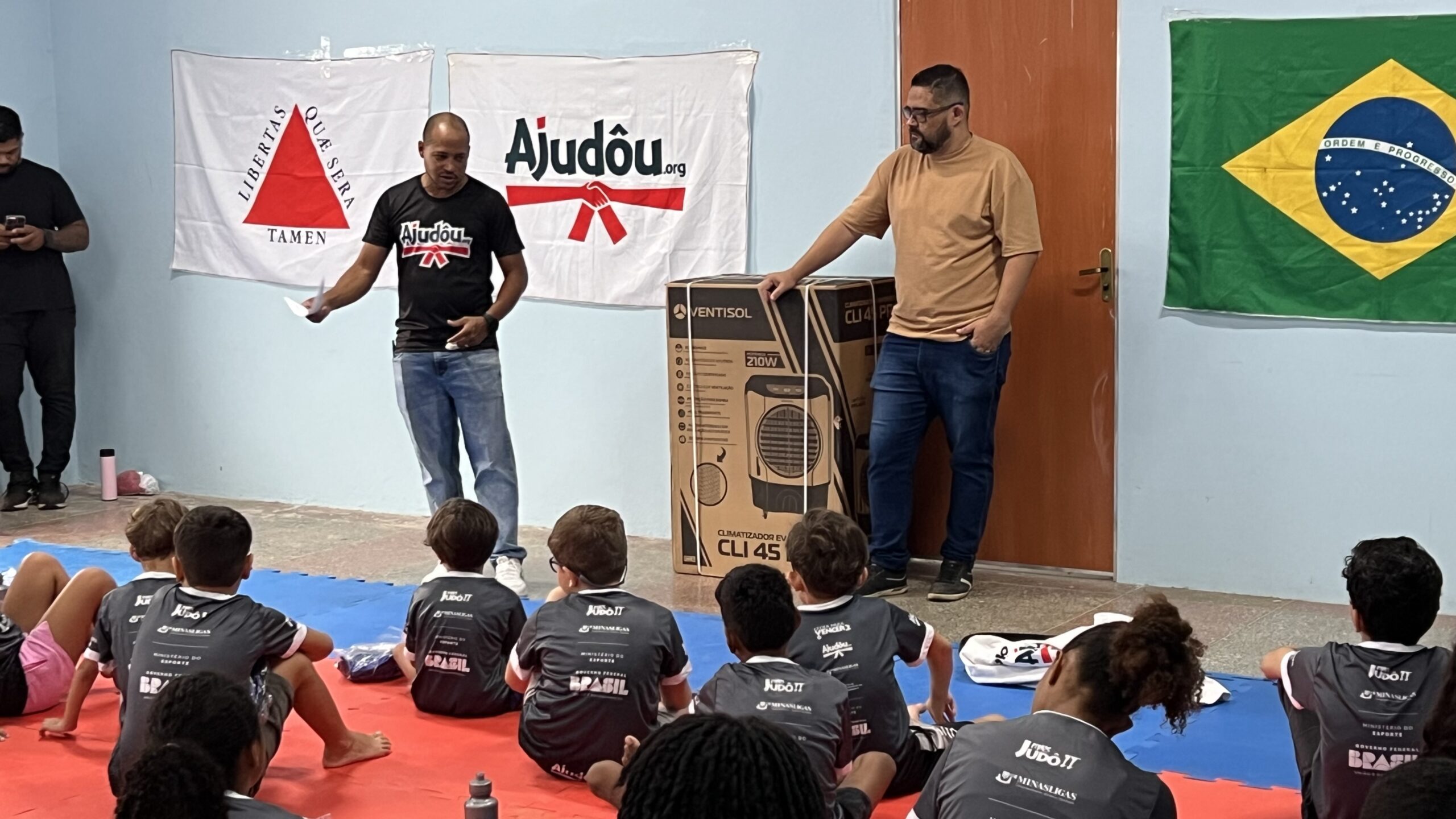 O secretário de Esporte de Pirapora, Alan Gitirana (que representou o prefeito Alex César) esteve presente e fez também a entrega de um climatizador (de grande porte) para o uso exclusivo nas aulas do projeto. Também prestigiaram o evento os pais e familiares dos alunos, os quais foram recepcionados pelos representantes da Ong Ajudou e da empresa Minasligas, que é a patrocinadora da iniciativa, que também conta com o respaldo da Lei de Incentivo ao Esporte.