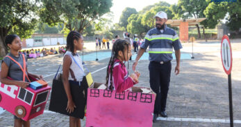 A parceria celebrada entre o Departamento de Estradas de Rodagem (DER/MG) e a Prefeitura de Pirapora, via Secretaria Municipal de Educação (SEMED), iniciou a programação da Campanha Maio Amarelo na Rede Municipal de Ensino, na manhã desta terça-feira (06/05). Mais de 100 alunos tiveram a oportunidade de conhecer um pouco mais sobre as regras e a educação no trânsito, com a Transitolândia.