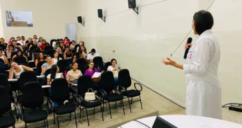 “Tivemos o privilégio de receber a enfermeira Viviane Gonçalves, servidora efetiva do município de Várzea da Palma e a ilustre profissional de referência, a enfermeira e professora, Tércia Moreira Ribeiro da Silva, da Escola de Enfermagem da UFMG, enfermeira e prof.ª Adjunta do Departamento de Enfermagem Materno Infantil e Saúde Pública da Escola de Enfermagem da UFMG.
