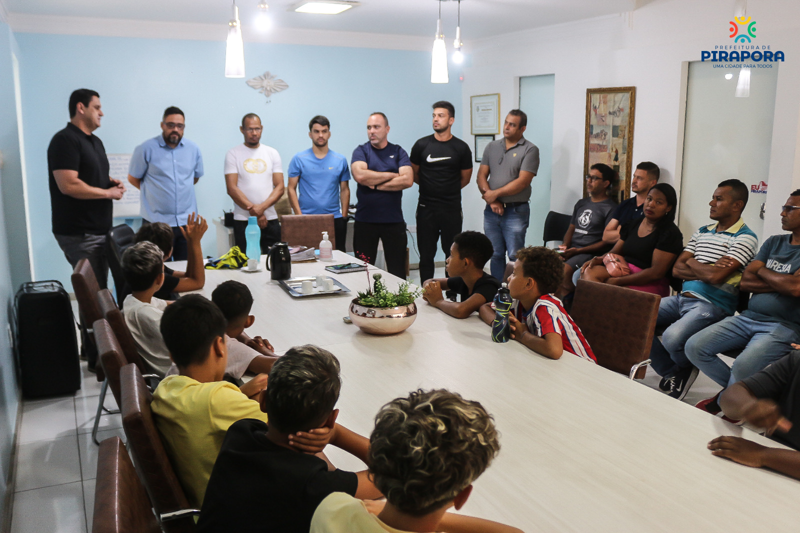 Ao recepcionar os jovens atletas, o prefeito destacou a importância dessa oportunidade. “Além de vocês representarem a nossa cidade, vocês terão a possibilidade de conhecer uma nova cidade, uma nova região e agregar mais evolução em seus processos de formação, como atletas. Não importa qual será o resultado, estamos muitos orgulhosos de ver Pirapora voltar a disputar competições entre os melhores de Minas Gerais”. Avaliou o prefeito, que conheceu também o uniforme oficial do time, apresentado pelo secretário de Esporte, Alan Gitirana.