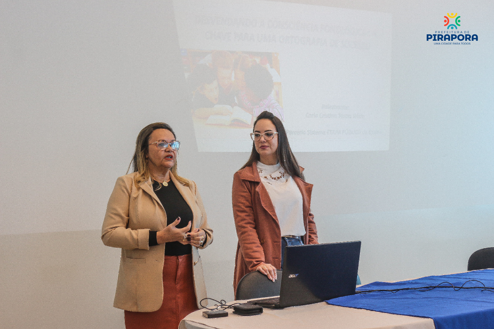 A Prefeitura de Pirapora, via Secretaria Municipal de Educação (SEMED), promoveu mais um Encontro Formativo para os supervisores e professores do Ensino Fundamental da Rede Municipal de Ensino, nesta semana. Os profissionais tiveram a oportunidade de agregar mais conhecimento com a fonoaudióloga Carla Résio, do Sistema Etapa Público.