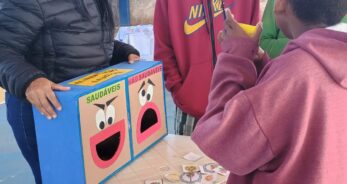 Durante a ação, os alunos participaram de um circuito lúdico e dinâmico, com diversas atividades abordando temas como higiene bucal, cuidados com o corpo e alimentação saudável. De forma leve e interativa, a equipe buscou conscientizar os participantes sobre a importância da escovação correta, da alimentação equilibrada e da prevenção de doenças bucais.