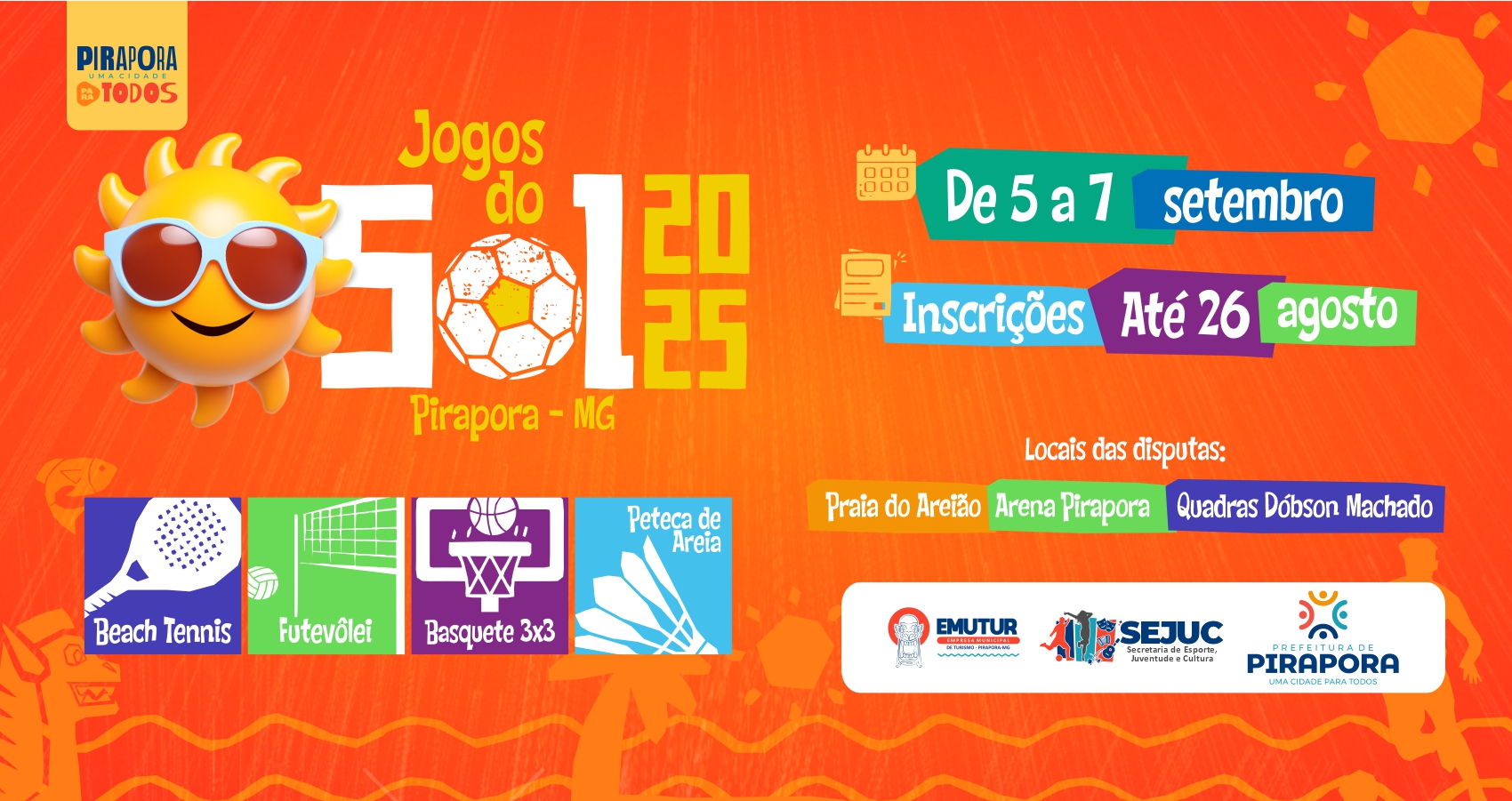 Até o dia 26 de agosto, estão abertas as inscrições para os Jogos do Sol 2025. O evento esportivo, que será realizado entre os dias 05 e 07 de setembro, é promovido pela Prefeitura de Pirapora, através da Secretaria de Esporte, Juventude e Cultura (SEJUC) e EMUTUR e proporcionará disputas nas modalidades de beach tennis, futevôlei, basquete (3×3) e peteca. A Praia do Areião e as Quadras Dóbson Machado vão receber os jogos, além da Arena Pirapora, parceira da competição.