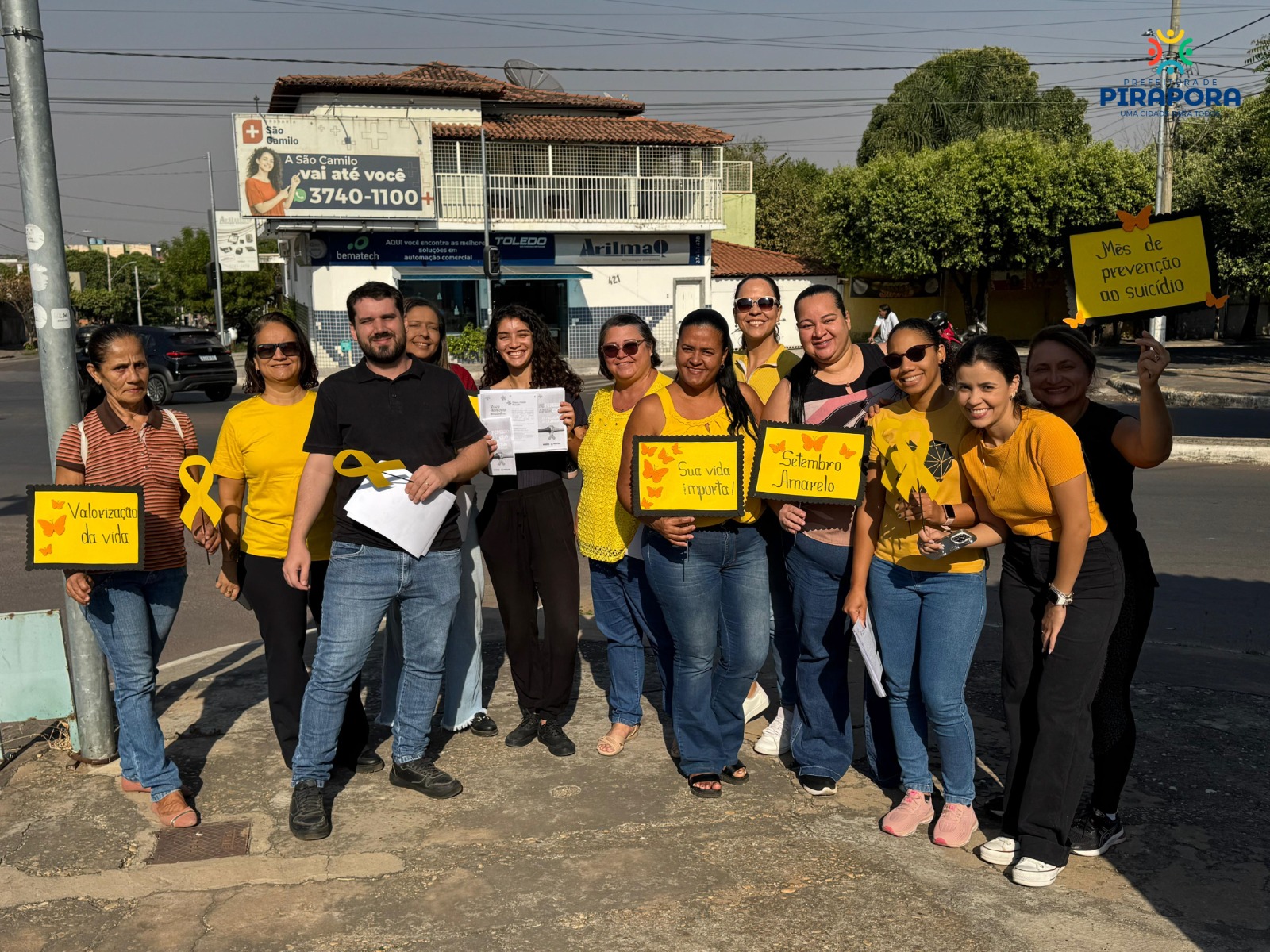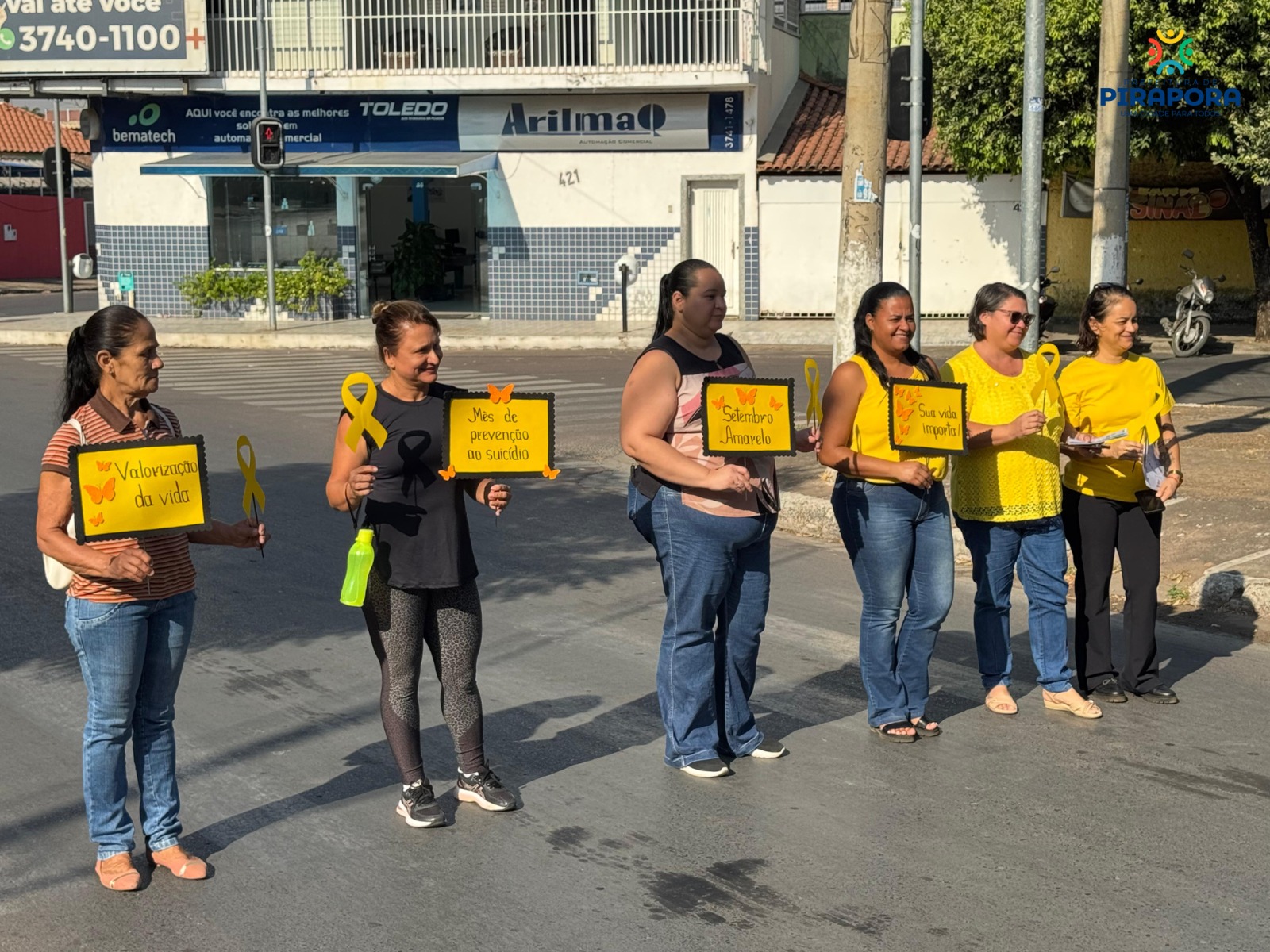 A Secretaria de Saúde de Pirapora promove ações do Setembro Amarelo destacando a importância da valorização da vida. Neste dia 10 de setembro, que é o “Dia Mundial de Prevenção e Cuidado”, os profissionais de Saúde Mental e Atenção Primária à Saúde fizeram uma panfletagem nos sinais: da Gerência Regional de Saúde, e também na Avenida Brasil, a partir das 7h30min.