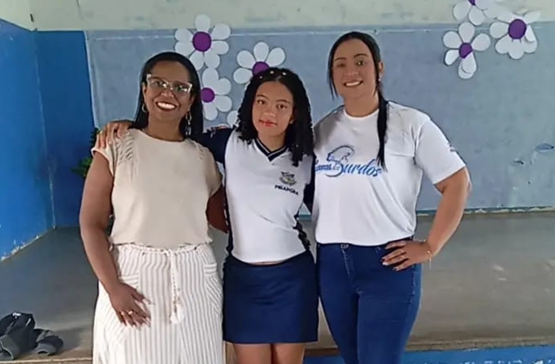 Neste ambiente e cultura que está sendo desenvolvida na escola, a aluna Ana Clara do 6º Ano do Ensino Fundamental, diagnosticada com deficiência auditiva severa, tem demonstrado uma maior conexão, senso de pertencimento e fortalecimento de vínculos com a sua turma e colegas de outras turmas, que fizeram questão de participar do curso de Libras.