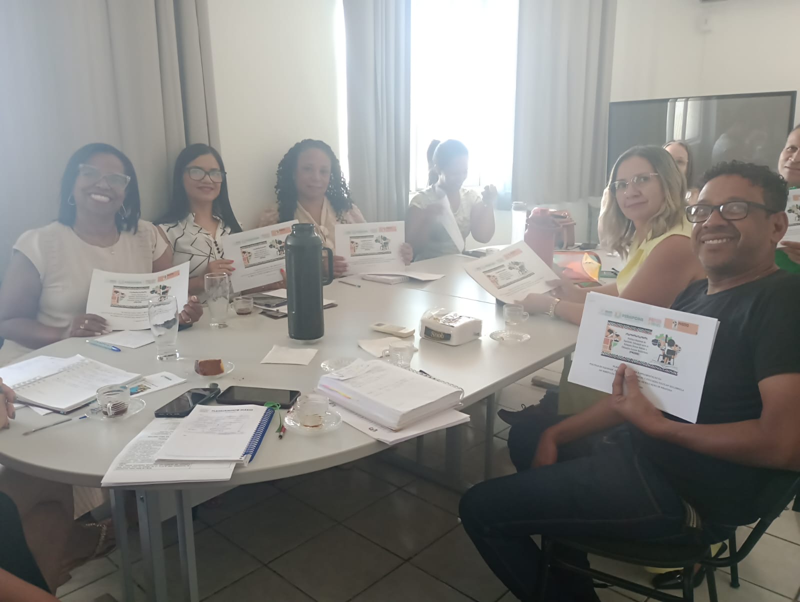 Nesta semana, docentes do Ensino Infantil e Fundamental estão participando da Formação Étnico-Racial no Contexto Escolar para a aplicação nos ambientes escolares, fundamentado em dois dos 7 Eixos específicos do Plano de Ação: 3 – Formação dos Profissionais da Educação e 7 – Difusão de Saberes.