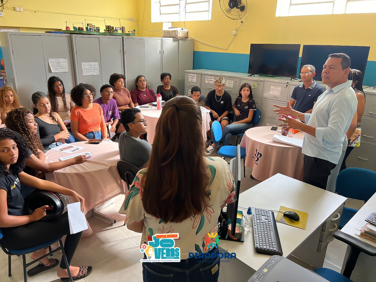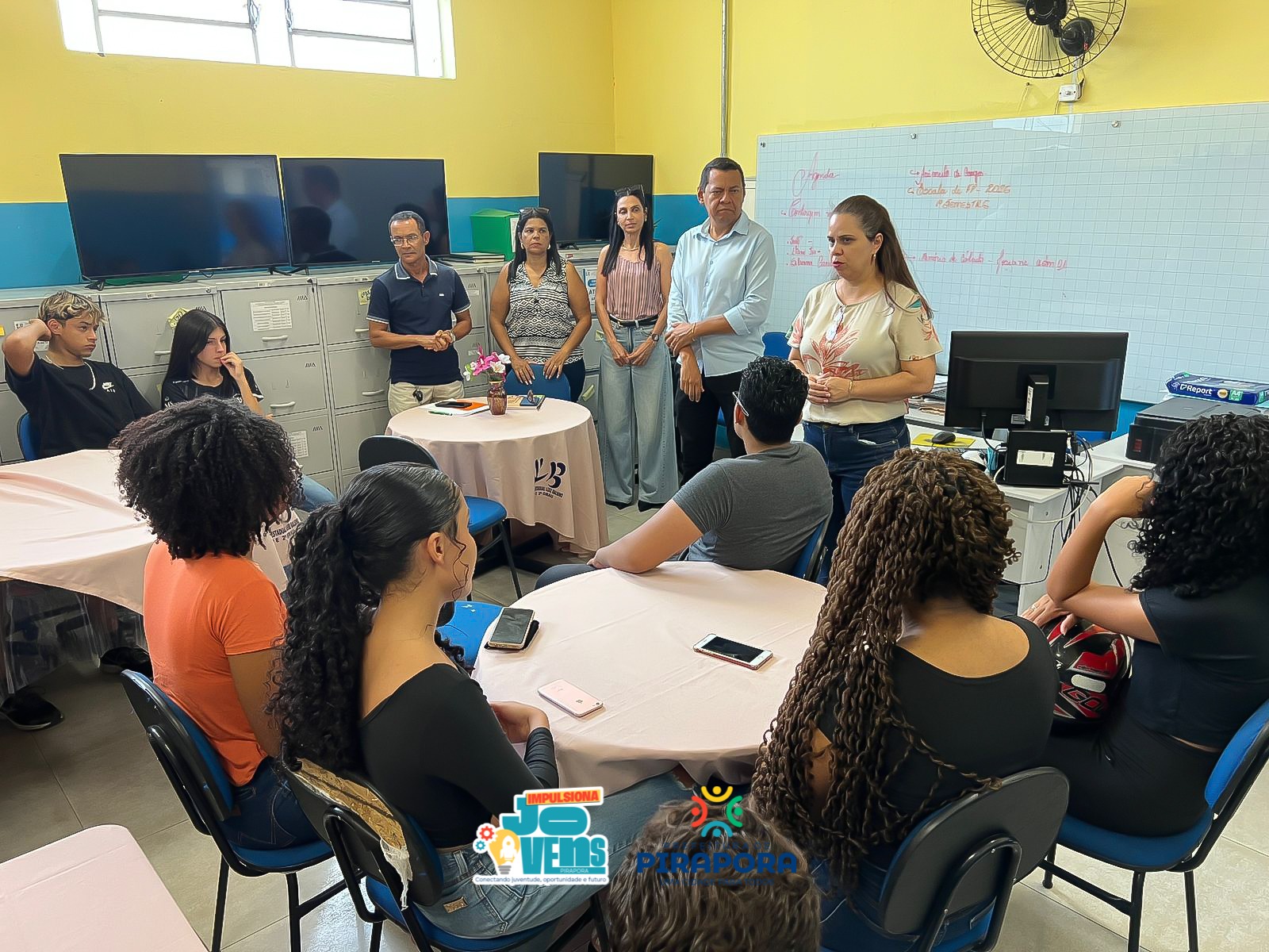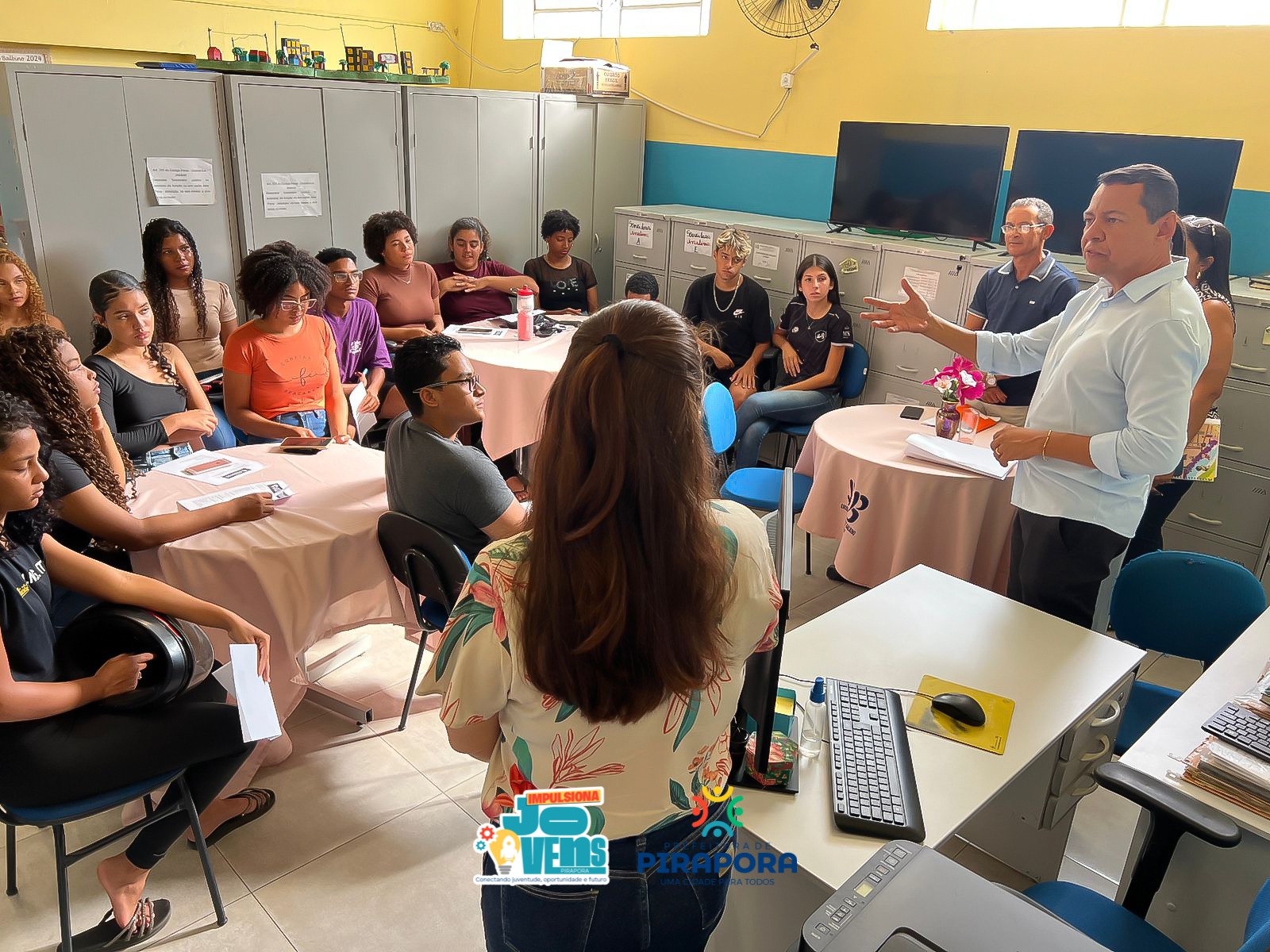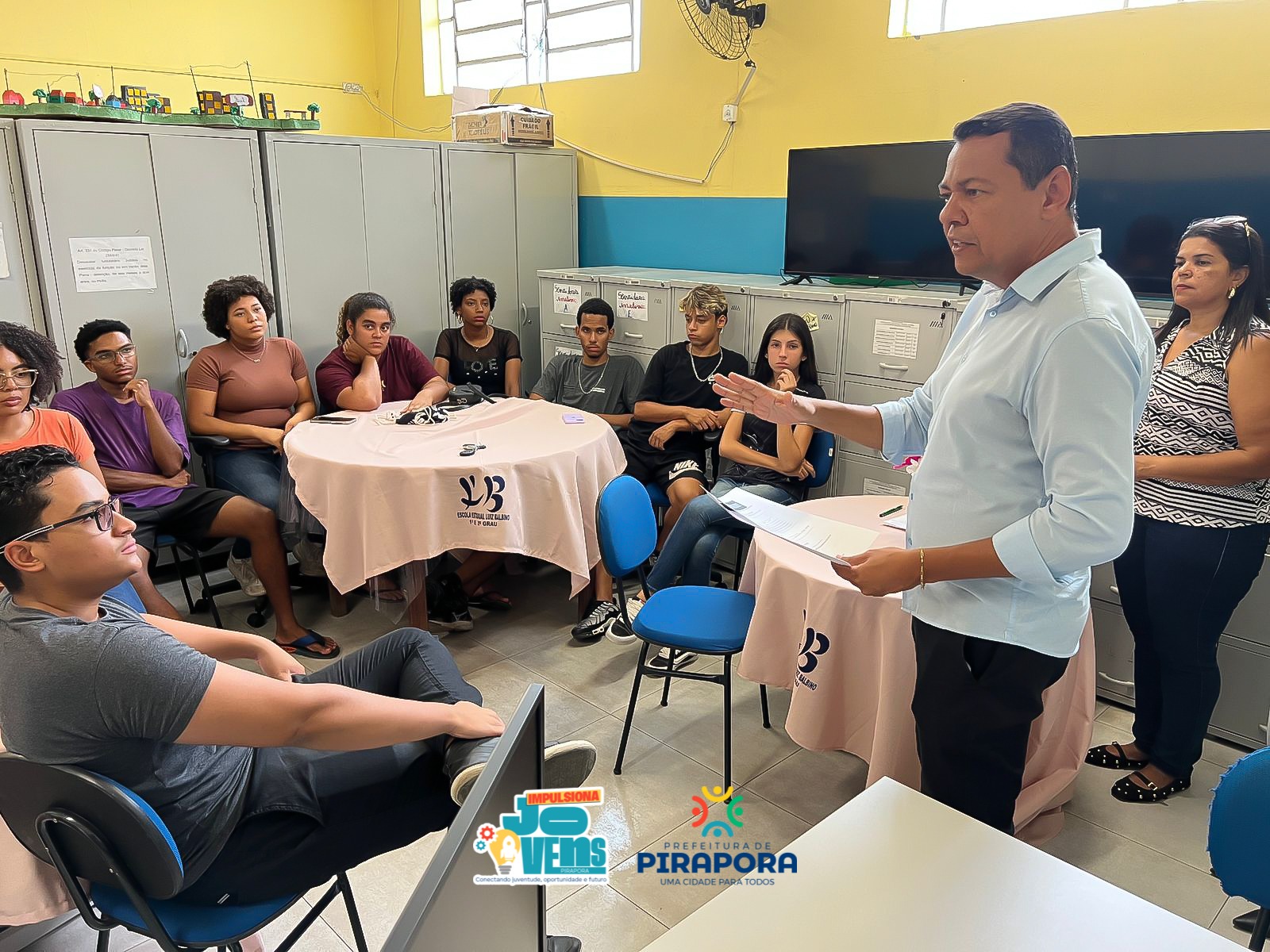 Na segunda-feira, 17 de novembro, a Prefeitura de Pirapora apresentou o Programa Impulsiona Jovens Pirapora aos estudantes da Escola Estadual Luiz Balbino. A iniciativa reuniu diversos jovens, que demonstraram grande interesse em participar do programa recém-estruturado pelo município para apoiar a qualificação e a preparação da juventude para o mercado de trabalho.