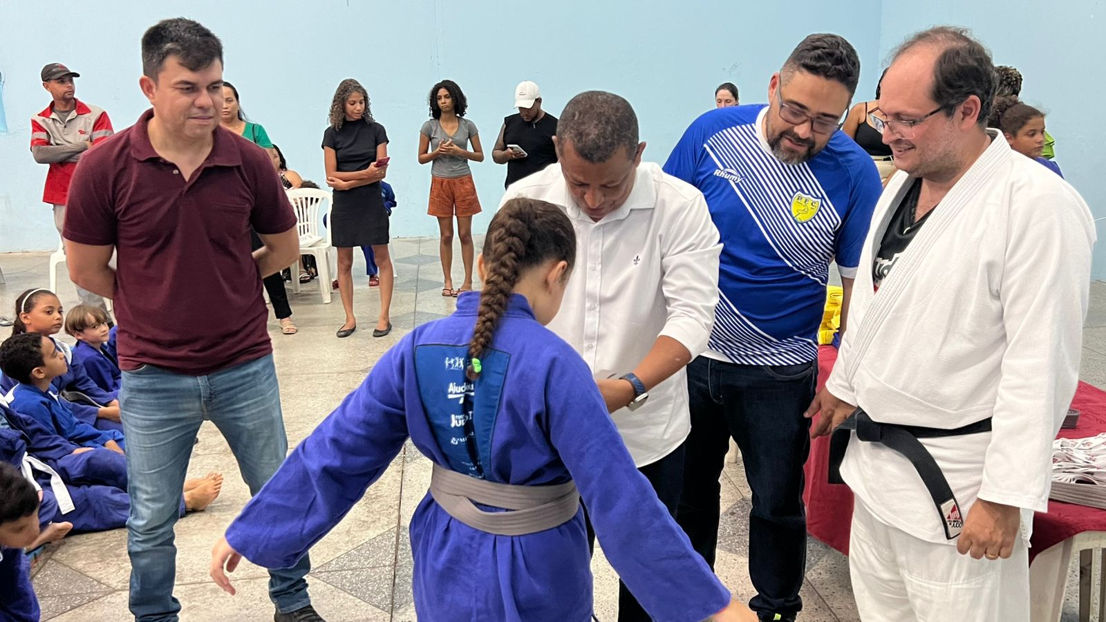 A solenidade, para as graduações dos alunos do Projeto Mais Judô, contou com a participação do vice-prefeito Maurisim, do secretário de Esporte Alan Gitirana e do vereador Leandro Rios. As dezenas de famílias que estiveram presentes se encheram de orgulho por mais um passo dado na modalidade, a qual é promovida gratuitamente graças à parceria da Ong Ajudou com a Prefeitura de Pirapora, via Secretaria de Esporte, Juventude e Cultura (SEJUC).