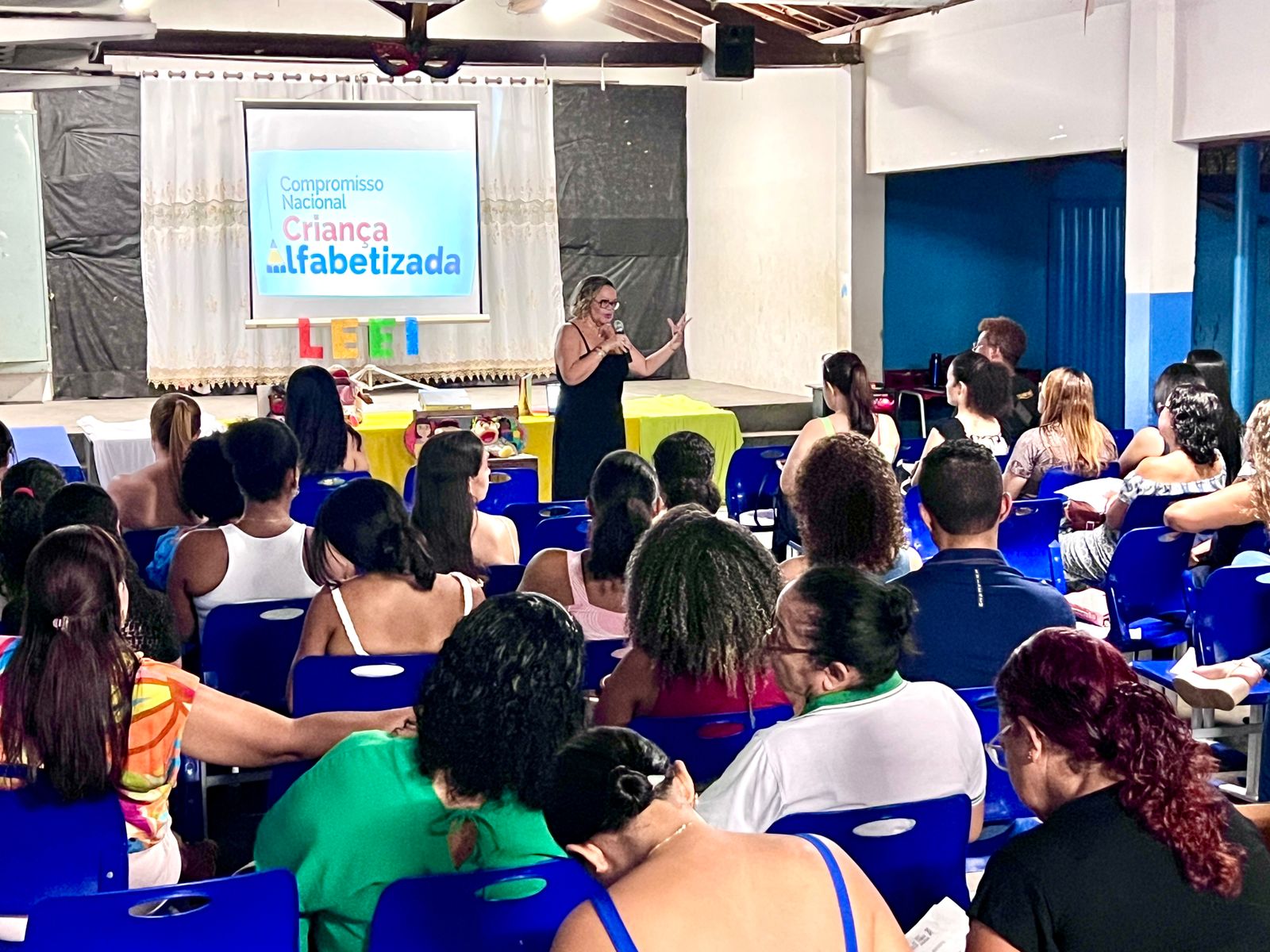 A diretora da Educação Infantil de Pirapora, Ana Cláudia Chamone, ressaltou a importância da formação e da troca de experiências com docentes: “Aproveitem cada momento deste processo que se inicia, não como uma obrigação, mas como um presente. Todos nós temos algo a dividir, pois aprender é mágico. Troquem experiências com os formadores e as articuladoras. É importante que todos façam parte desse pacto que é o Compromisso Nacional Criança Alfabetizada”.