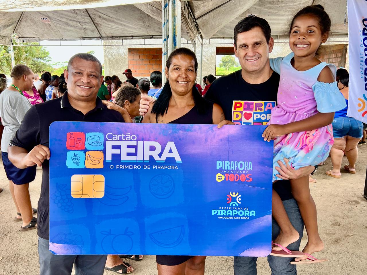 A Prefeitura de Pirapora, por meio da Secretaria Municipal de Assistência Social, em parceria com a Secretaria de Meio Ambiente, realizou no último final de semana a entrega do Cartão Feira. As ações aconteceram no dia 11, no Mercado Municipal, e no dia 12, na Feira dos Santos Dumont.