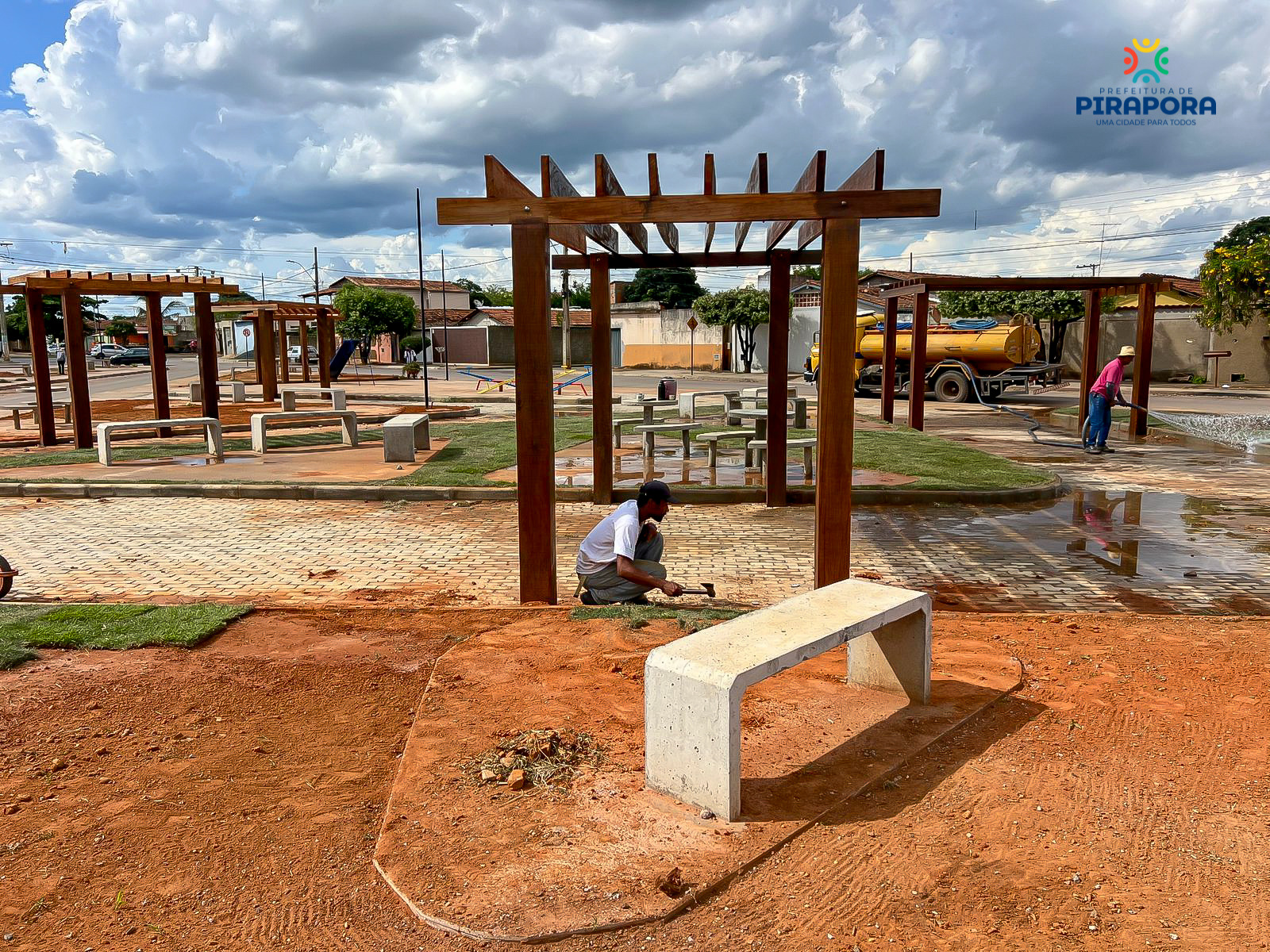 Paralelamente, está sendo instalado um novo parquinho, que oferecerá um espaço adequado para o lazer das crianças e a convivência das famílias. Além disso, a equipe de obras trabalha na finalização da praça, que em breve será entregue a população, sendo um novo espaço de acolhimento para a comunidade.