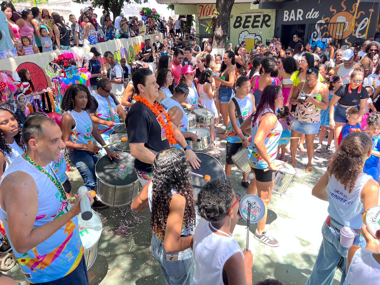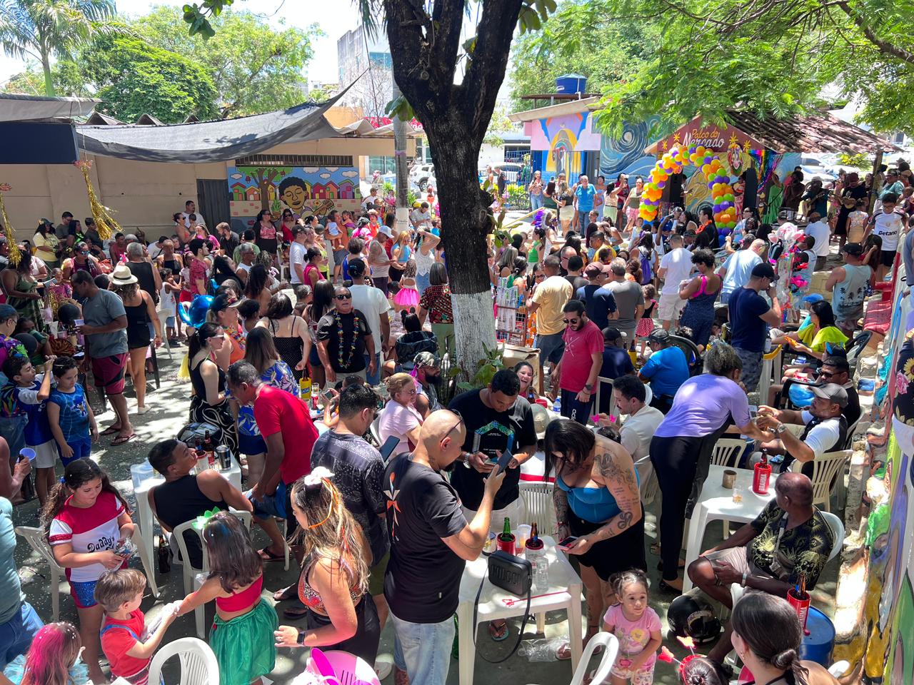 O ponto de partida foi no tradicional e simbólico Mercado Municipal, pela manhã, com o Carnaval Kids. Centenas de famílias levaram suas crianças para participarem das brincadeiras, dançarem e brincarem em um ambiente seguro e inclusivo. Foi a oportunidade dos futuros foliões aprenderem sobre a valorização da cultura local, da diversidade e do potencial musical piraporense, com a participação da Família Félix do Projeto Baticundum.