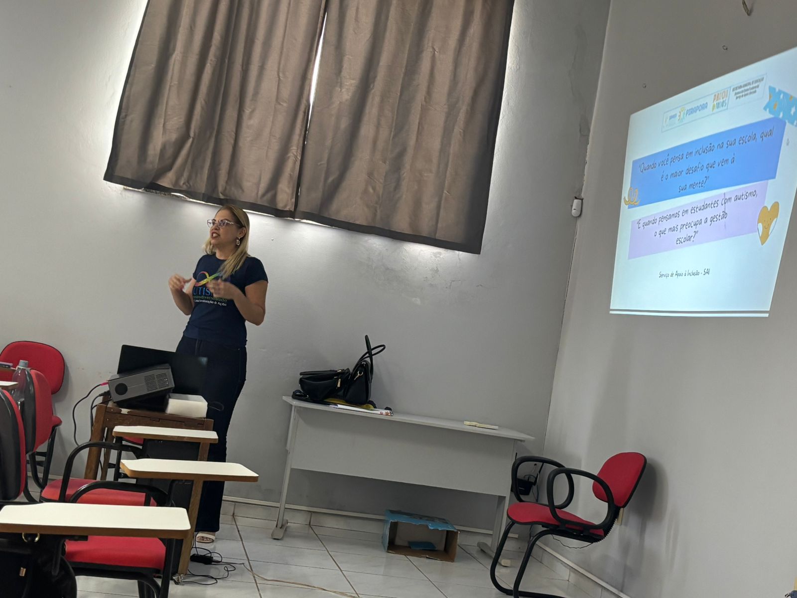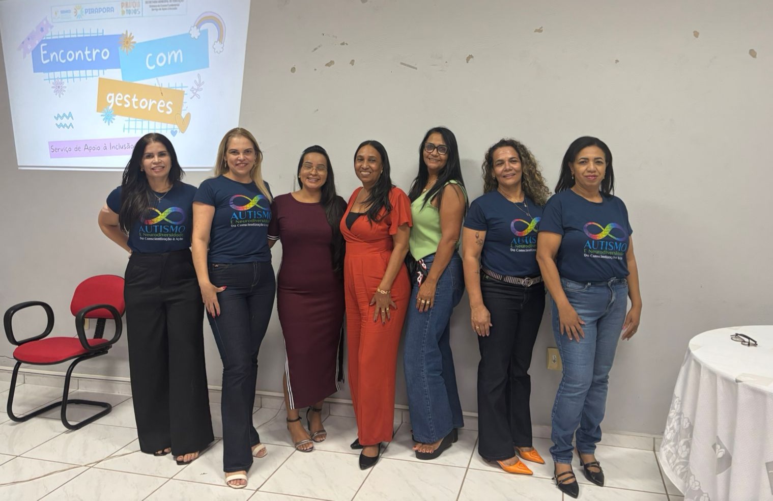 Um dos pontos altos do encontro foi a apresentação do Projeto Abril Azul 2026, conduzida pela equipe do Serviço de Atendimento à Inclusão (SAI-SEMED), que abriu espaço para trocas de experiências e novas conexões entre os gestores.