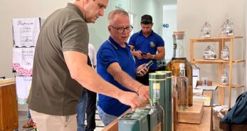 Durante o evento, o senhor Demerval Santos Silva Neto compartilhou sua experiência na produção da Cachaça Branquinha de Minas.