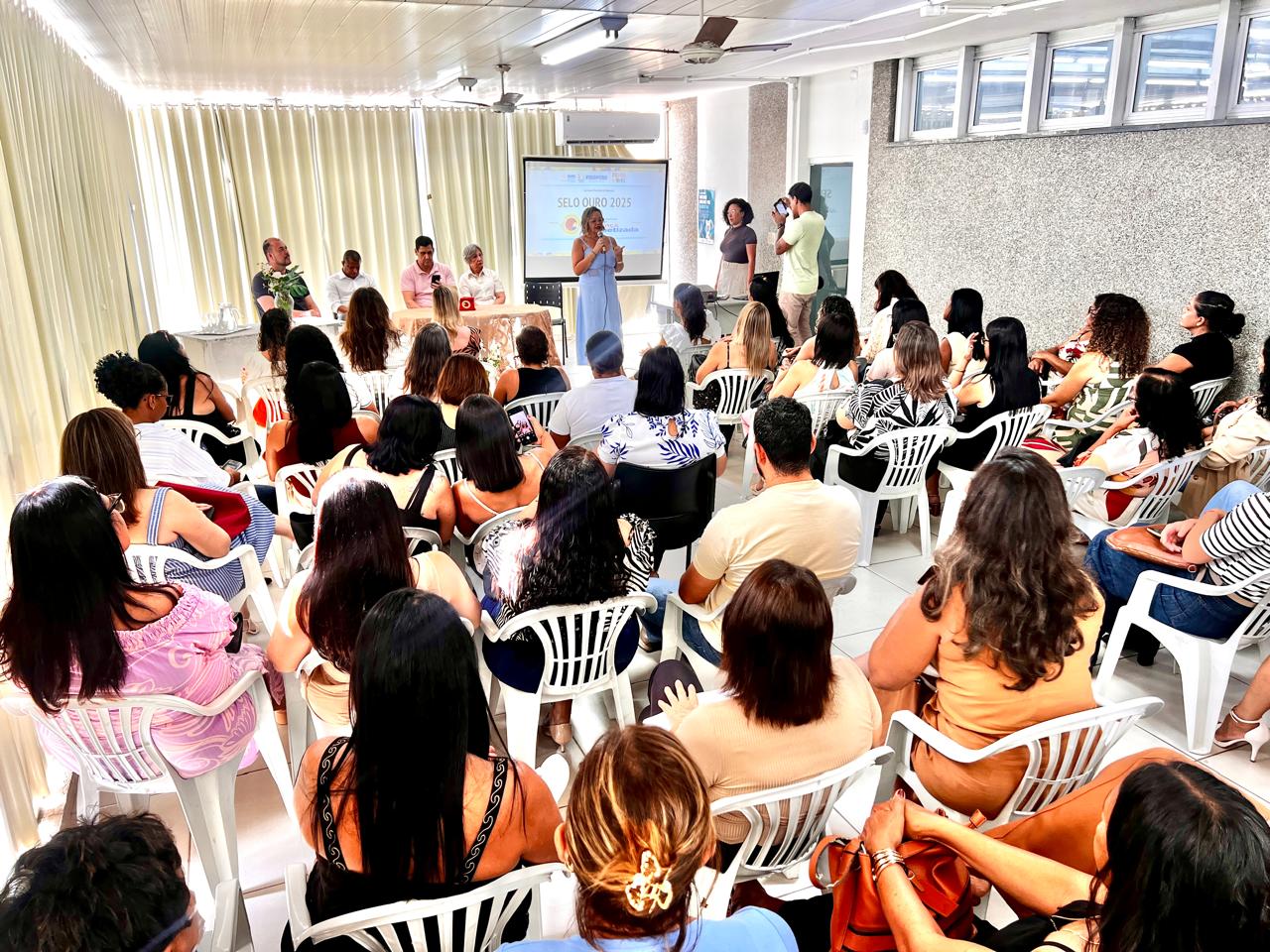 Na manhã desta segunda-feira (30/03), às 9h, no SEMAS, foram apresentados em cerimônia oficial os resultados da Rede Municipal de Ensino. O evento celebrou a entrega do Selo Ouro de Alfabetização, o nível mais elevado de reconhecimento do Compromisso Nacional Criança Alfabetizada (CNCA), concedido pelo Ministério da Educação (MEC).
