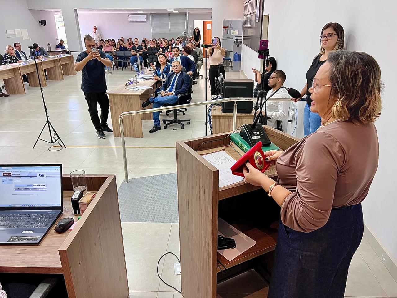 A secretária foi prestigiada por sua equipe da SEMED, incluindo a equipe técnica e administrativa: Irisleide, Isabel Cristina, Flávia Campos, Giovana do RH; do setor pedagógico e da Educação Infantil, as educadoras Alcione Rocha, Ana Cláudia Chamone, Valdisséia Araújo, Vanessa, Renata, Ludmylla, Andreia, Adriana e Vilma. Também marcaram presença a articuladora municipal do Selo Ouro, Cristiane e Angélica (articuladora regional e da Undime), reafirmando o trabalho coletivo que garantiu o reconhecimento oficial ao município. A secretária destacou que esse reconhecimento oficial comprova o compromisso com um ensino de alta qualidade e coloca a gestão em patamar de destaque nacional.